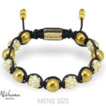 Du får her et armbånd med forgyldte hæmatit sten og ægte klare bjergkrystaller. Disse perler og krystaller står utroligt flot til hinanden og bindingerne i macrame fuldender looket på dette flotte armbånd. Dette armbånd er til manden, der tør vise farve og ikke er bange for positiv opmærksomhed omkring sine smykker.